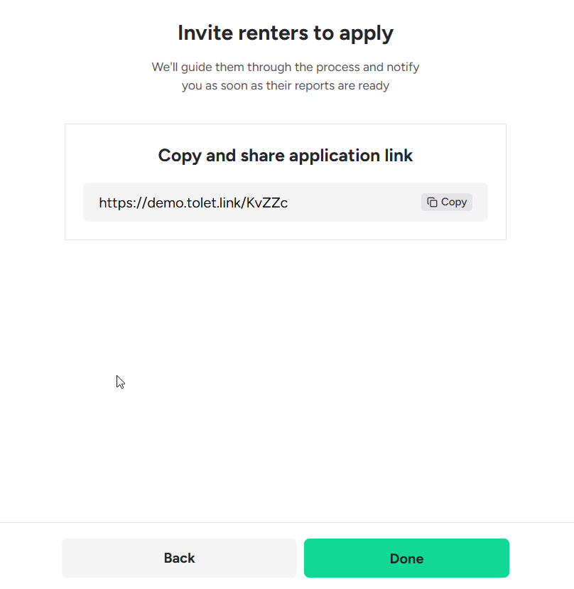 Screening a tenant involves creating an account, adding property details, and sharing the application link with the applicant.