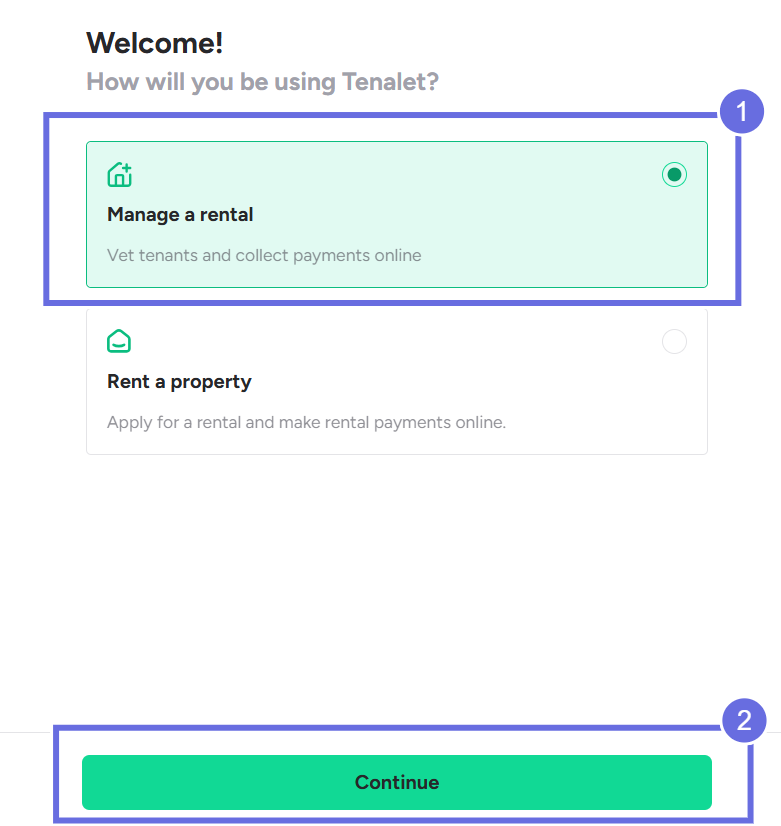 a. On the Welcome page, select Manage Rental and click Continue.